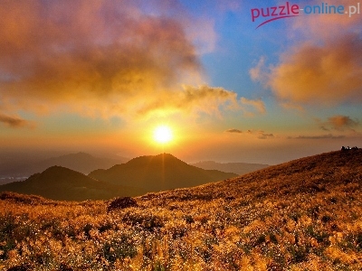 Puzzle Góry, Zachód, Słońca, Rośliny