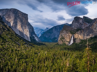 Stan Kalifornia, Stany Zjednoczone, Yosemite, Drzewa, Wodospad, Park Narodowy, Góry, Bridalveil Fall