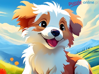 Puzzle Szczeniak, Grafika, Pies, Góry