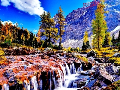 Puzzle Wodospad, Góry, Drzewa