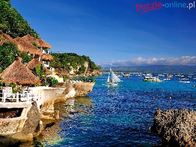 Puzzle Góry, Morze, Wybrzeże, Łodzie