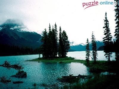 Góry, Alberta, Jezioro, Wysepka, Drzewa