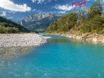 Puzzle Wzgórza, Rzeka, Drzewa, Góry