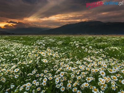 Puzzle Góry, Łąka, Zachód Słońca