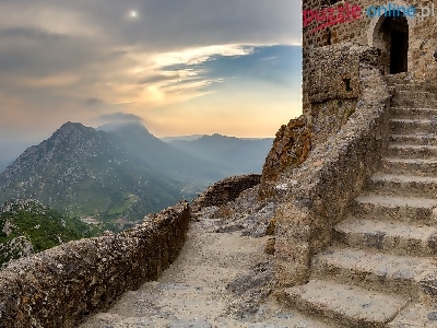 Góry, Słońca, Ruiny, Zamku, Zachód