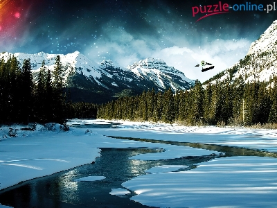 Puzzle Góry, Krajobraz, Zima, Rzeka