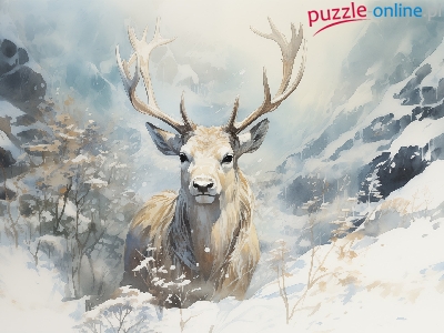 Jeleń, Góry, Zima, Grafika, Śnieg
