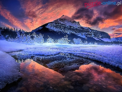 Puzzle Zima, Góry, Woda