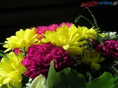 Puzzle Goździki, Kwiaty, Bukiet, Margerytki