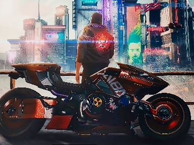 Motocykl, Cyberpunk 2077, Gra, Postać, Domy, Mężczyzna