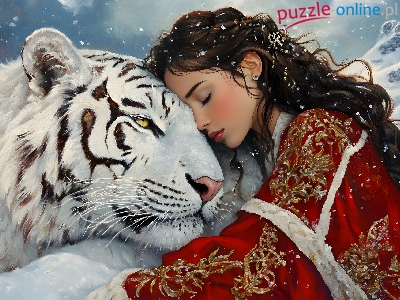 Tygrys, Kobieta, Biały, Grafika, Ubranie, Czerwone, Śnieg