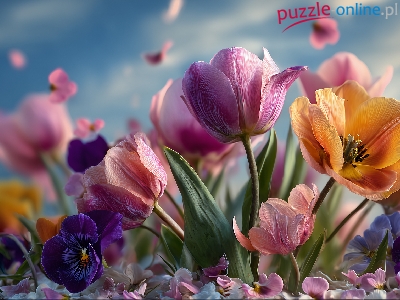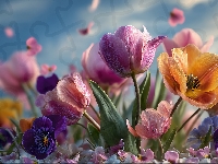 Kolorowe, Tulipany, Kwiaty, Grafika AI, Bratki