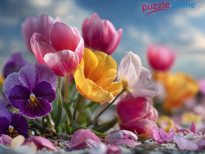 Kolorowe, Tulipany, Kwiaty, Grafika AI, Bratki