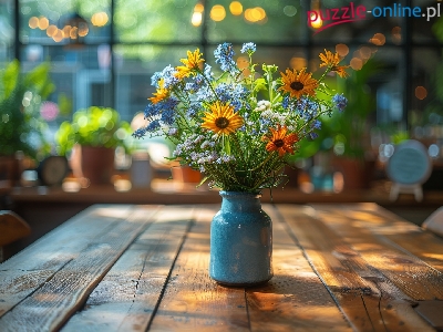 Puzzle Bukiet, Stół, Kwiaty, Grafika