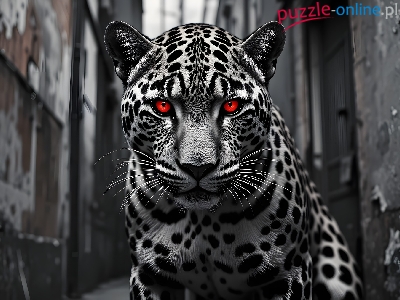 Puzzle Czerwone, Lampart, Oczy, Grafika