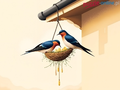 Puzzle Dach, Jaskółki, Gniazdo, Grafika