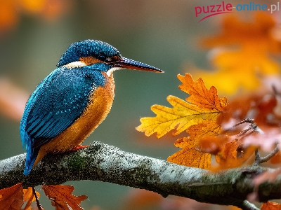 Zimorodek, Liście, Gałąź, Grafika AI, Dębu
