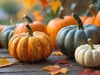 Kolorowe, Liście, Dynie, Grafika AI, Deski