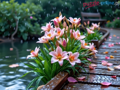 Lilie, Kładka, Kwiaty, Grafika AI, Deszcz