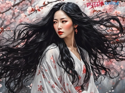 Włosy, Kobieta, Długie, Grafika, Komono, Azjatka, Drzewo
