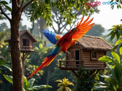 Papuga, Drzewa, Ara, Grafika AI, Domki