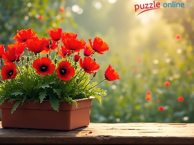 Puzzle Doniczka, Czerwone, Maki, Grafika