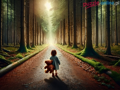 MiÅ›, Las, Dziewczynka, Grafika, Droga, Drzewa, Pluszak