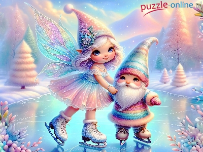 Lodowisko, Zima, Gnom, Grafika, Dziewczynka, Elfka, Łyżwy