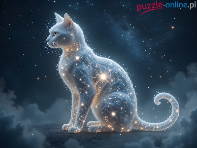 Puzzle Gwiazdy, Kot, Noc, Grafika