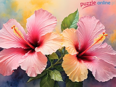 Puzzle Hibiskus, Różowe, Kwiaty, Grafika