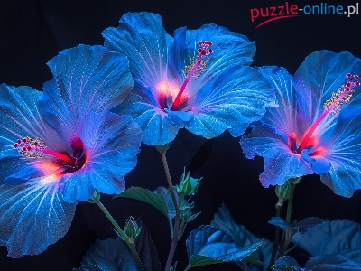 Puzzle Hibiskusy, Kwiaty, Niebieskie, Grafika