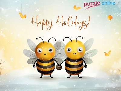 Dwa, Napis, Pszczoły, Grafika, Happy Holidays