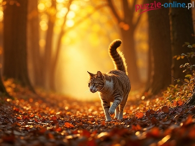 Kot, Ścieżka, Las, Grafika AI, Jesień