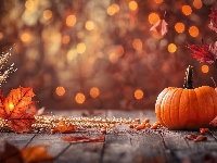 Dynia, Liście, Deski, Grafika AI, Kłosy
