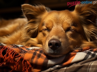 Brązowy, Pies, Śpiący, Grafika AI, Koc