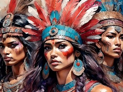 Pomalowane, Trzy, Kolczyki, Grafika, Pióropusze, Kobiety, Twarze