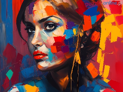 Puzzle Kolorowa, Kobieta, Twarz, Grafika