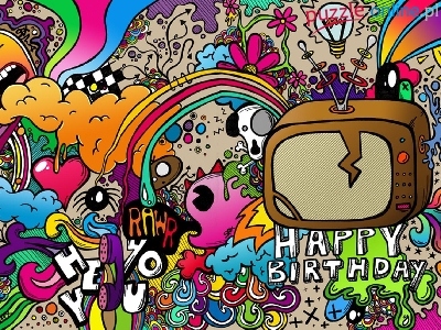 Puzzle Grafika, Urodziny, Kolorowa, Telewizor