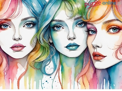 Puzzle Kolorowe, Trzy, Dziewczyny, Grafika