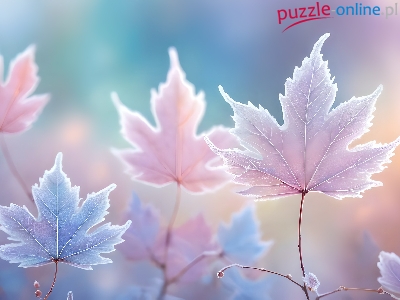Puzzle Kolorowe, Liście, Oszronione, Grafika