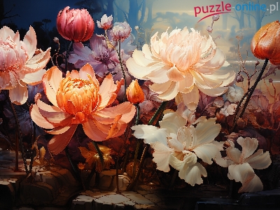 Puzzle Kolorowe, Kwiaty, PÄ…ki, Grafika