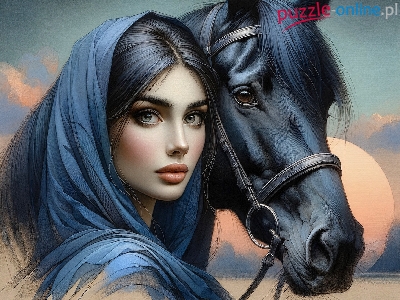 Puzzle Koń, Kobieta, Chusta, Grafika