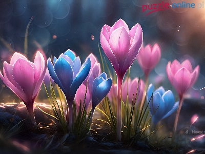 Puzzle Krokusy, Różowe, Niebieskie, Grafika