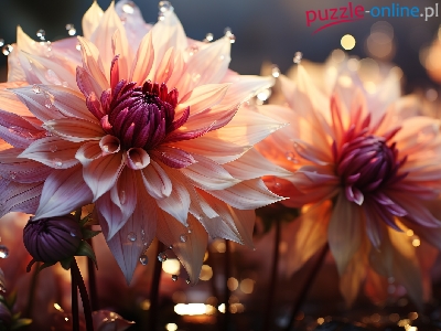 Puzzle Krople, Dalie, Kwiaty, Grafika