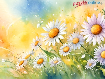 Puzzle Kwiaty, Margerytki, Białe, Grafika