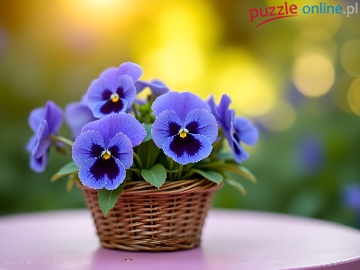 Puzzle Kwiaty, Niebieskie, Bratki, Grafika