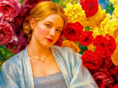 Kobieta, Żółte, Czerwone, Grafika AI, Kwiaty