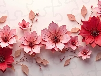 Puzzle Kwiaty, Różowe, Czerwone, Grafika