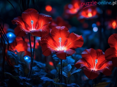 Puzzle Kwiaty, Rozświetlone, Czerwone, Grafika