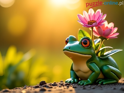 Puzzle Kwiaty, Żaba, Doniczka, Grafika